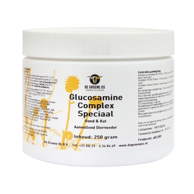 De Groene Os Glucosamine Complex Special Dog/Cat 250 gr ist ein Ergänzungsfuttermittel für Hunde und Katzen mit einer leistungsstarken und vollständigen Gelenkformel, die Glucosamin, Chondroitin, MSM, Kollagen und Hyaluronsäure enthält. Diese leistungsstarke Gelenkformel wurde speziell für die Gesunderhaltung der Gelenke entwickelt.