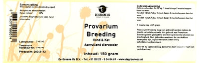 De Groene Os Provarium Breeding Dog/Cat 150 gr ist ein pulverförmiges Hormonpräparat für Hunde und Katzen zur Unterstützung der Fruchtbarkeit und Normalisierung des Zyklus. Provarium Breeding trägt zur Aufrechterhaltung des Hormonhaushalts bei und unterstützt so den Zyklus von Hündinnen und Rüden. Außerdem kann es dazu beitragen, einen übermäßigen Sexualtrieb bei Männern und männlichen Personen zu zügeln.