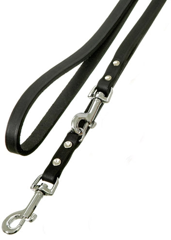 Schöne, stilvolle Trainingslinie mit Metallbeschlägen. Die Leine ist aus schwarzem Leder gefertigt, hat eine Breite von 12 mm und ist 2,4 Meter lang.
