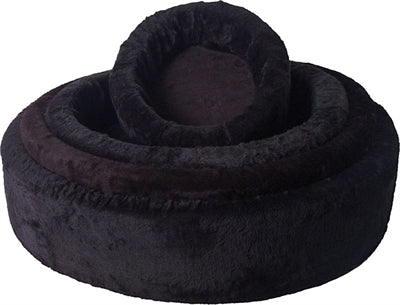 Rundes Hundebett mit erhöhtem Rand. Der Plüschbezug ist abnehmbar.