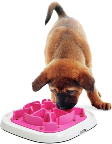 Savic Futternapf Enigma Slowfeeder Assorti 32 x 32 x 6,5 cm ist ein Slowfeeder mit einem Muster, das das Tier herausfordert, länger zu fressen. Hunde und Katzen sind von Natur aus Jäger und arbeiten gerne für ihr Futter. Ein normaler Futtertrog wird daher schnell langweilig, was auch dazu führt, dass die Tiere ihr Futter hinunterschlingen, mit allen Konsequenzen, die das mit sich bringt. Verhindern Sie dies mit diesem praktischen Fressnapf von Savic und fordern Sie Ihr Tier auf, wieder für sein Futter zu arbeiten! Dieser Fressnapf mit Rändern macht es für Ihr Haustier schwieriger, sein Futter zu erreichen, was gegen Langeweile hilft und das Schlucken reduzieren kann. Der Futternapf ist in verschiedenen Größen und Farben erhältlich.