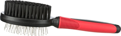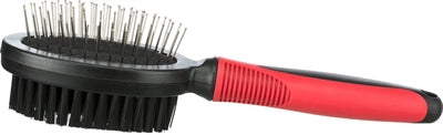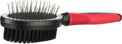 Trixie Brush Double-Sided Plastic 12 x 5 cm ist eine Bürste für Hunde mit Lang-, Kurz- und Kordelhaar, hergestellt aus Nylon mit Metallstiften mit Noppen. Diese Bürste von Trixie ist aus Kunststoff, mit einem gummierten Griff und Metallstiften und -noppen. Die Bürste ist doppelseitig und hat auf der anderen Seite weichere Borsten, um die obere Schicht des Fells zu bürsten. Diese Bürste ist für Kurzhaar-, Langhaar- und Corded-Felle geeignet.