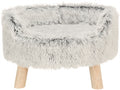 Trixie Hundekorbsofa Harvey Rund Grau / Weiß - Schwarz 46 x 28 cm ist ein Hundekorb oder Katzenkorb auf Beinen, mit Langhaarplüsch, Reling und wendigem Kissen. Dieses Sofa bietet Ihrem Haustier einen weichen und zugluftfreien Platz zum Liegen. Das Sofa Harvey steht auf Holzbeinen und ist mit herrlich weichem Langhaarplüsch bezogen. Der Handlauf ist aus Massivholz gefertigt und das Wendekissen ist mit langhaarigem Plüsch und Velours bezogen, um zusätzlichen Halt zu bieten. Die Belastbarkeit des Sofas beträgt 40 kg.