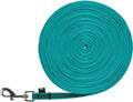 Trixie Hundeleine Türkis 5 mtr x 1,5 cm ist eine lange Leine aus Gurtband mit Gummi für mehr Halt, ohne Handschlaufe. Mit dieser fünf Meter langen Leine hat Ihr Hund genug Platz zum Laufen. Die Leine kann im Garten verwendet werden, aber wegen der rutschfesten Gummierung auch beim Gehen. Die Leine wird ohne Handschlaufe geliefert und endet in einem Musketenhaken.