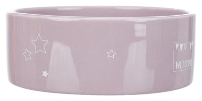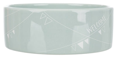 Der Trixie Junior Keramik-Futternapf 14 cm 200 ml ist ein extra wasserarmer Napf oder Futternapf für Ihren Welpen, Hund oder Ihre Katze. Dieses niedliche Wasserbecken hat auf der Innenseite niedliche Abdrücke eines Tiergesichts und Flaggen mit "Willkommen" auf der Außenseite. Der Napf ist aus lackierter Keramik gefertigt, so dass er für Trockenfutter, Nassfutter und Wasser geeignet und leicht zu entfernen ist. Der Anleger wird in weichen Pastellfarben sortiert geliefert: eine Farbwahl ist nicht möglich.