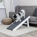 Trixie Laufgang mit klappbaren Stufen MDF Weiß, 44 x 106 x 46 cm, ist ein praktischer, einteiliger Laufgang und eine Treppe für Hunde und Katzen, die für zusätzlichen Halt mit Teppich bedeckt sind. Diese Gangway von Trixie ist wirklich multifunktional! Durch die klappbaren Stufen können Sie dieses Brett als Laufbrett und als Treppe benutzen. Die Gangway besteht aus weiß lackiertem MDF und die Stufen sind mit Teppichboden ausgelegt, was ein Ausrutschen verhindert. Bei Nichtgebrauch kann die Gangway zur platzsparenden Aufbewahrung zusammengeklappt werden.
