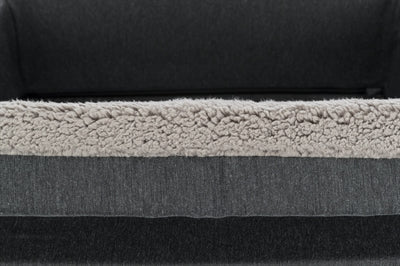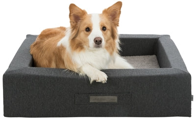 Trixie Vital Dog Basket Bendson Orthopaedic Dark Grey/Light Grey 100X80 cm ist ein hochwertiges Hundebett für Hunde mit orthopädischer Polsterung. Dieser orthopädische Korb bietet Ihrem Hund optimalen Schlafkomfort. Er ist aus plüschigem und robustem Webstoff mit Polyesterpolsterung gefertigt. Das Kissen im Korb ist beweglich und mit visko-elastischen Schaumstoffflocken gefüllt. Diese Flocken, die auch als Komfortschaum bezeichnet werden, haben einen Memory-Effekt und kehren daher in ihre ursprüngliche Form zurück. Der Rand ist mit Schaumgummi gefüllt. Die Wäsche ist herausnehmbar und der Korb ist mit einem Griff versehen. Die rutschfeste Unterseite erleichtert dem Hund das Ein- und Aussteigen aus dem Korb, ohne zu verrutschen.